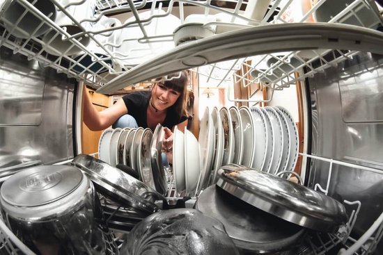 Beim Geschirr spülen