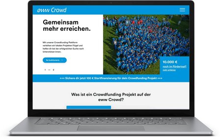 Als regionales Energieversorgungsunternehmer nimmt die eww Gruppe ihre Aufgabe als Teil der Gemeinschaft ernst und hat mit der Plattform eww Crowd eine Finanzierungsmöglichkeit unterschiedlichster Projekte und Ziele geschaffen.