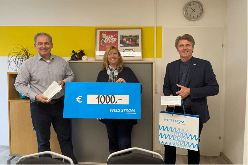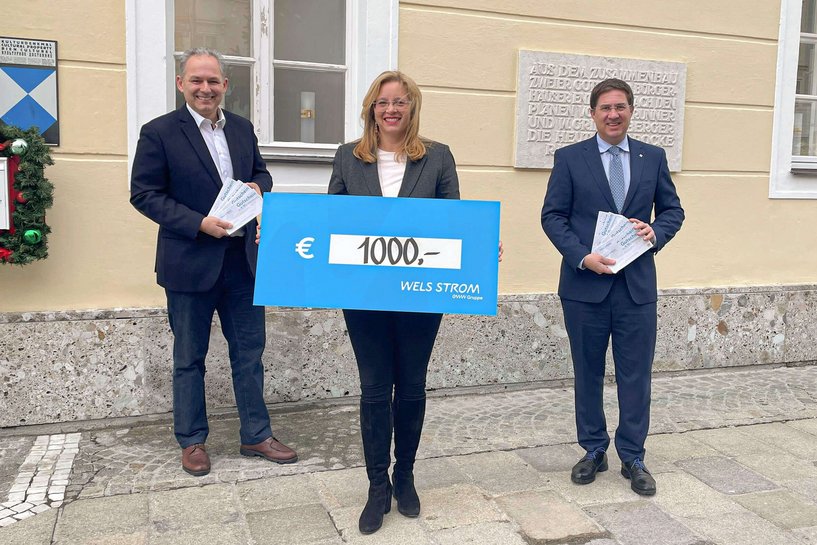 Stromgutscheine im Gesamtwert von 3000 Euro hat Wels Strom an drei Sozialeinrichtungen übergeben: an die „Volkshilfe Triangel“, das „Soziale Wohnservice Wels E37“ und die Sozialabteilung der Stadt Wels.
