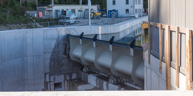 Heute wurden nach einer Rekordbauzeit von bis dato zwei Jahren beim Kraftwerk Traunleiten der Wehrkanal und die Kaplan-Turbinen geflutet.