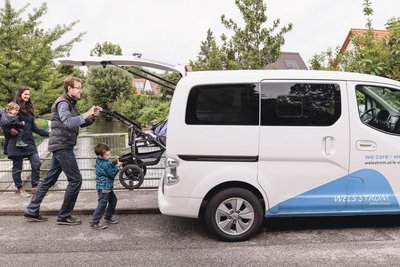 Im geräumigen Nissan e-NV200 ließe sich auch der Kinderwagen für die Tochter bequem mitnehmen. „Wenn wir ein Wochenende wegfahren, kommt schon einiges Gepäck zusammen. Dafür ist dieses Auto optimal“, freut sich Arista. Wels, Salzburger Straße, die Ampel zeigt Rot. Der Fahrer des weißen, kleinen Renault Zoe hält in der zweiten Spur.