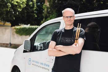 Er bucht das Fahrzeug beispielsweise dann, wenn er sein Schlagzeug einpackt und zu einem Konzerttermin düst. „mp4.live“ heißt die aus sechs Oberösterreichern bestehende Band, die vor allem mit lyrisch groovenden Rocksongs zu begeistern weiß.