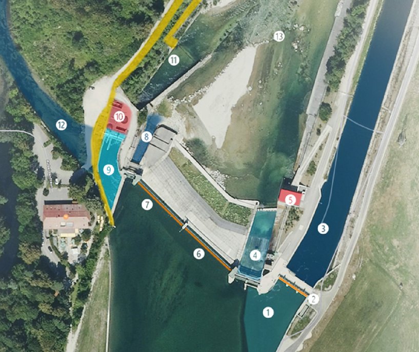 Fische wandern, je nach Art und ihren ökologischen Ansprüchen, sehr unterschiedlich weit. Um diese Wanderung nicht zu behindern, mü̈ssen Kraftwerke heutzutage mit Fischwanderhilfen ausgestattet werden. Der Fischtunnel verbindet den Wasserbereich nach dem